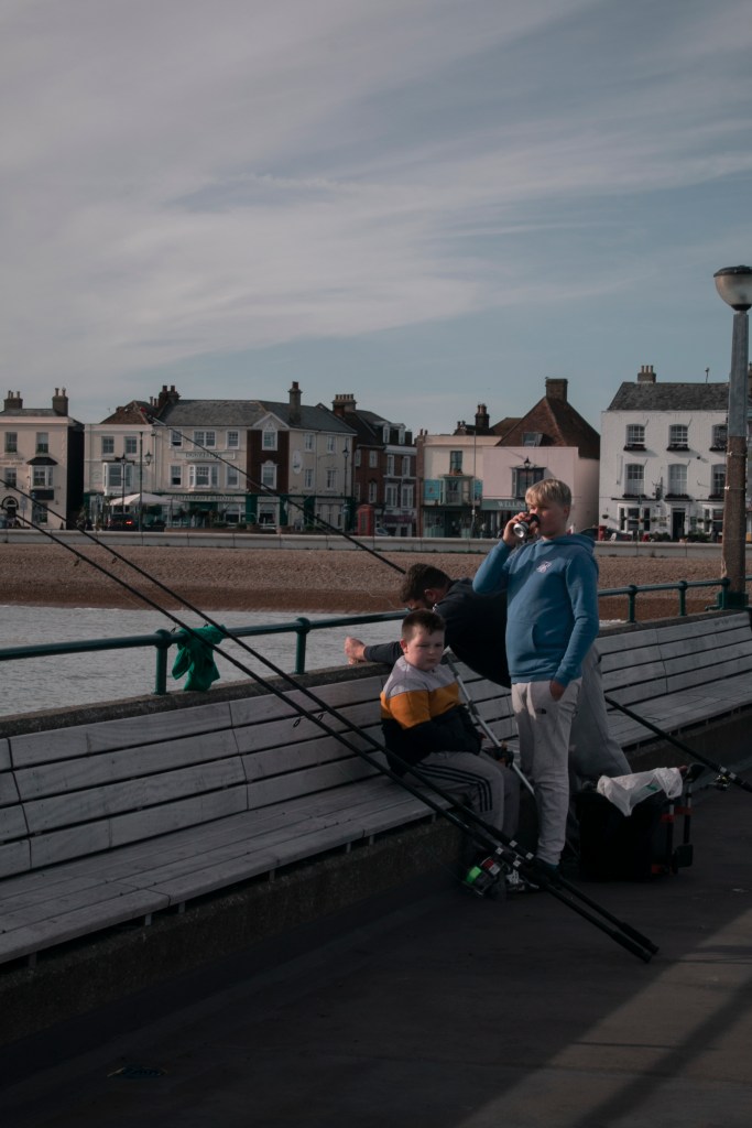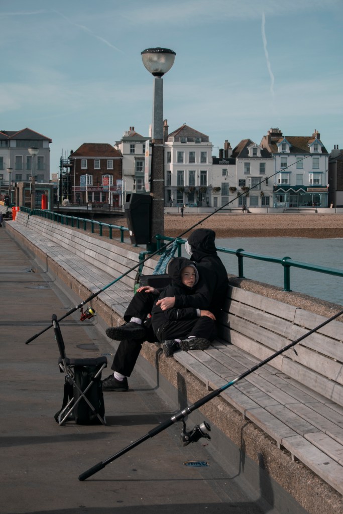 When showing this shoot to fellow peers, one of their favourites (and mine), was the boy hugging his dad. It was almost like the barrier between the rods is their space. This was taken while going off the pier and thought it would make a charming image. The images have warmth, from the boy hugging his dad, but also the bonding experience between the two shows the character of this environment.