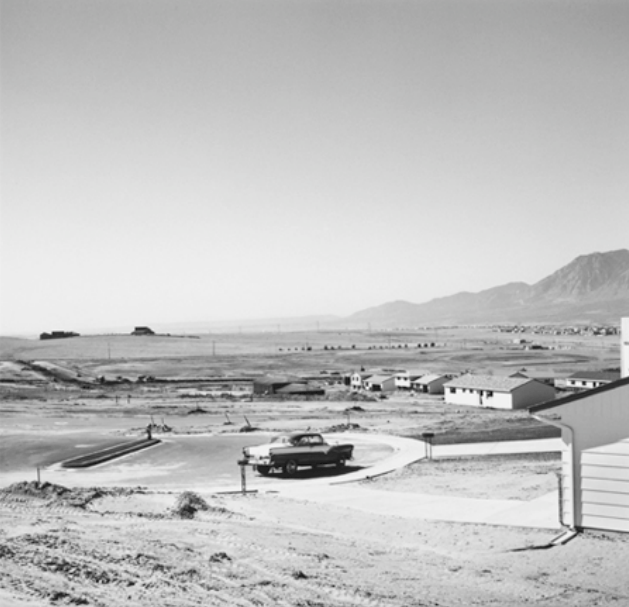 The landscape that surrounds the cars looks vast and wide, especially in Robert Adams image on the right. The use of negative space in the sky enhances the isolation of this suburban town, allowing the viewer’s eye to focus on the car. Whereas Friedlander image is fill up with different subjects making it more busy and loud, rather than the other one is quiet.