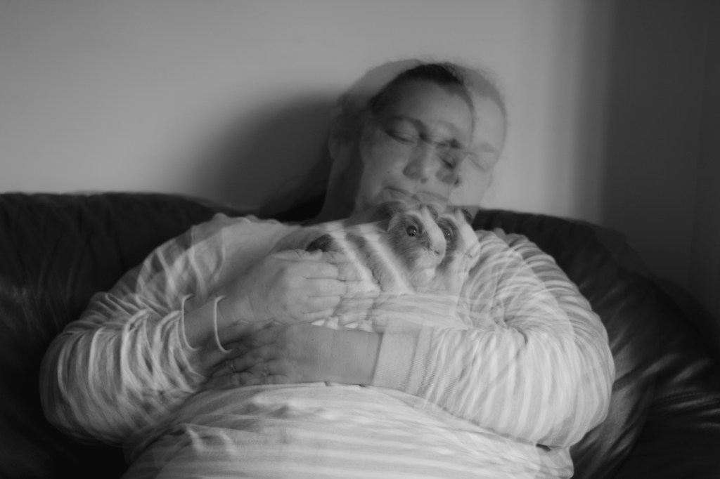 My mum doesn’t like to be photographed, but I wanted her to look natural. So for one set of images, I sat her in the living room sofa, while holding Peppa, our guinea pig. My mum is a carer of animals, and like me is very creative. We have a household of 2 dogs, 2 rabbits, 8 chickens and a guinea pig. So, I wanted to look natural and comfortable.