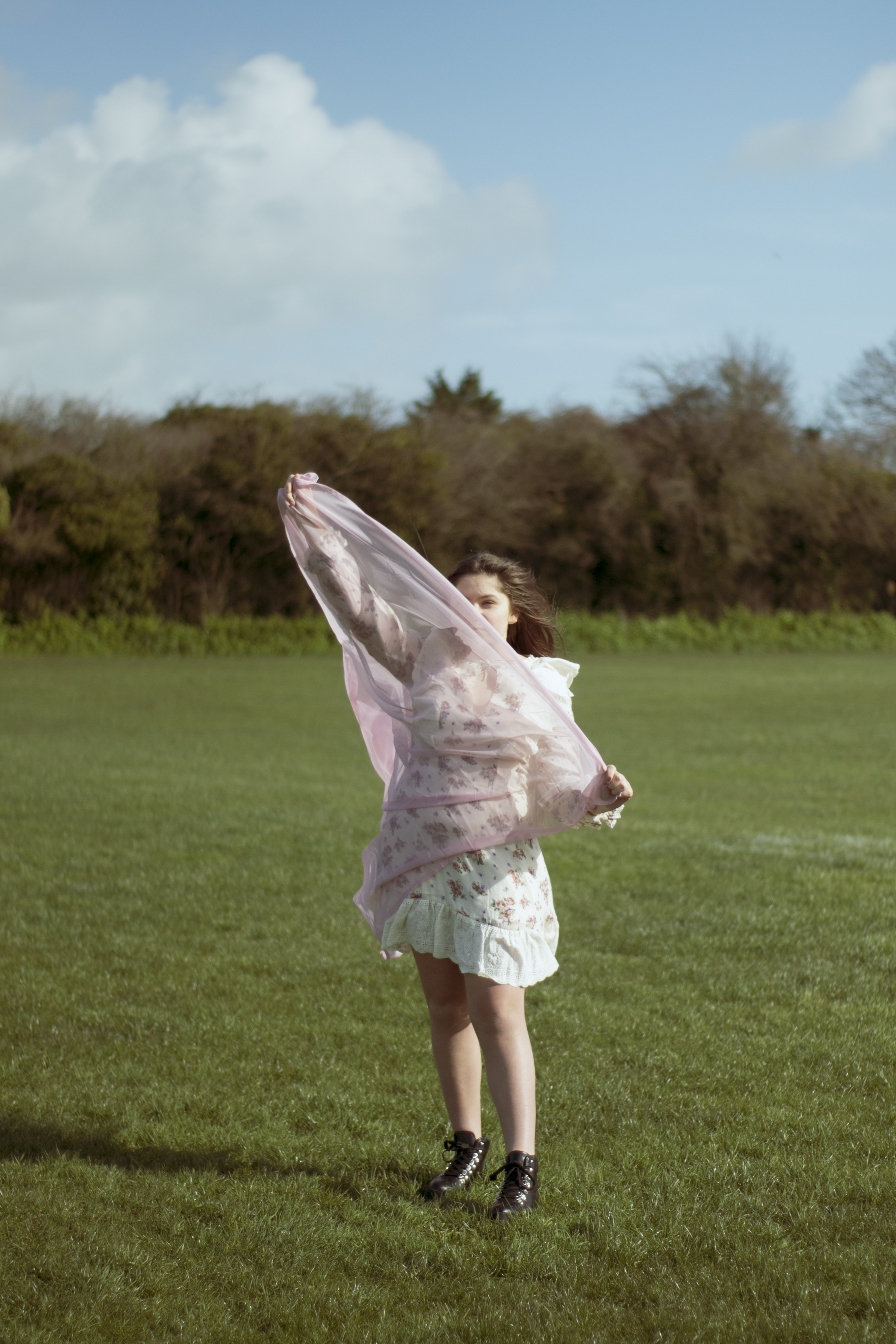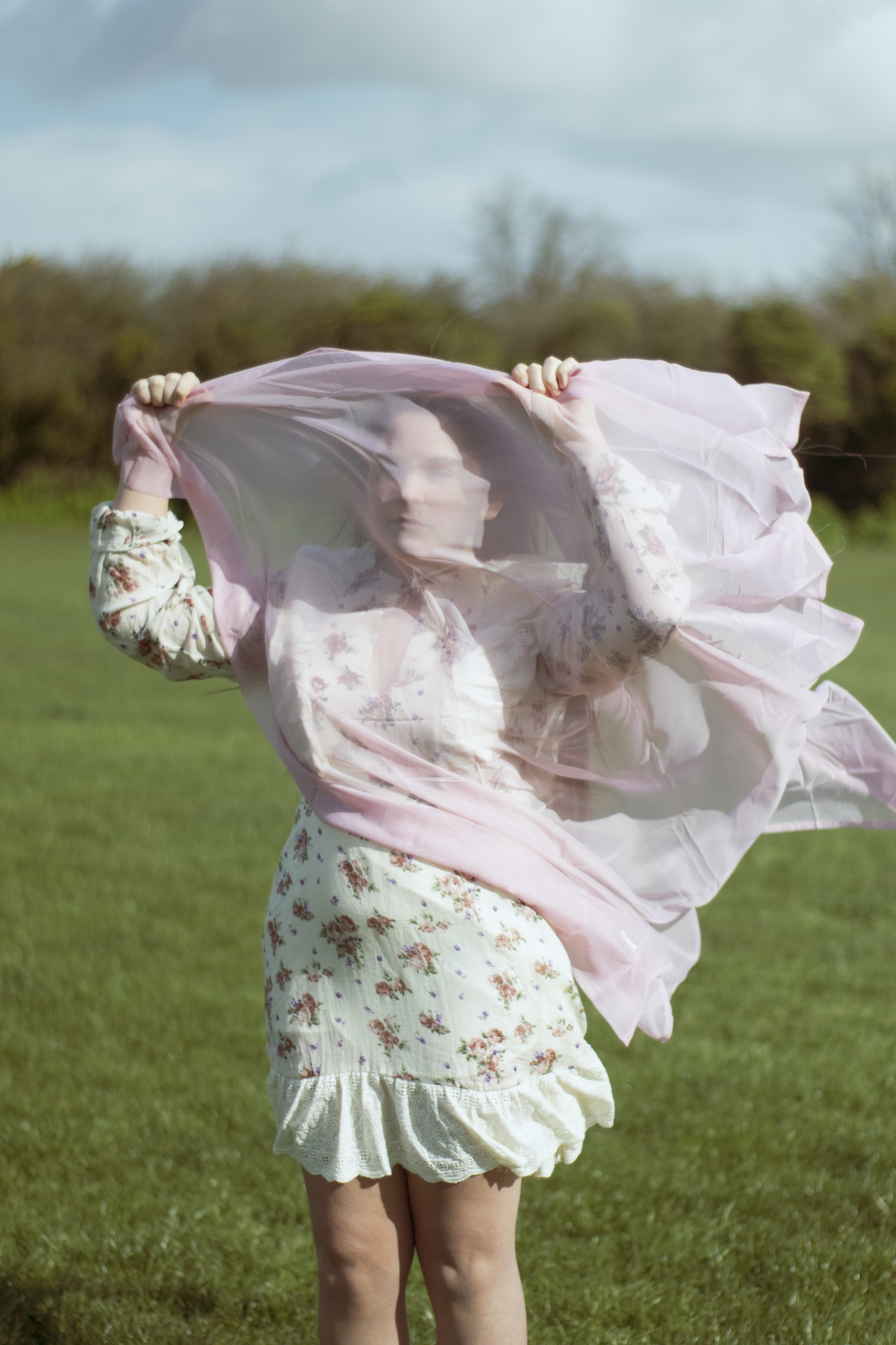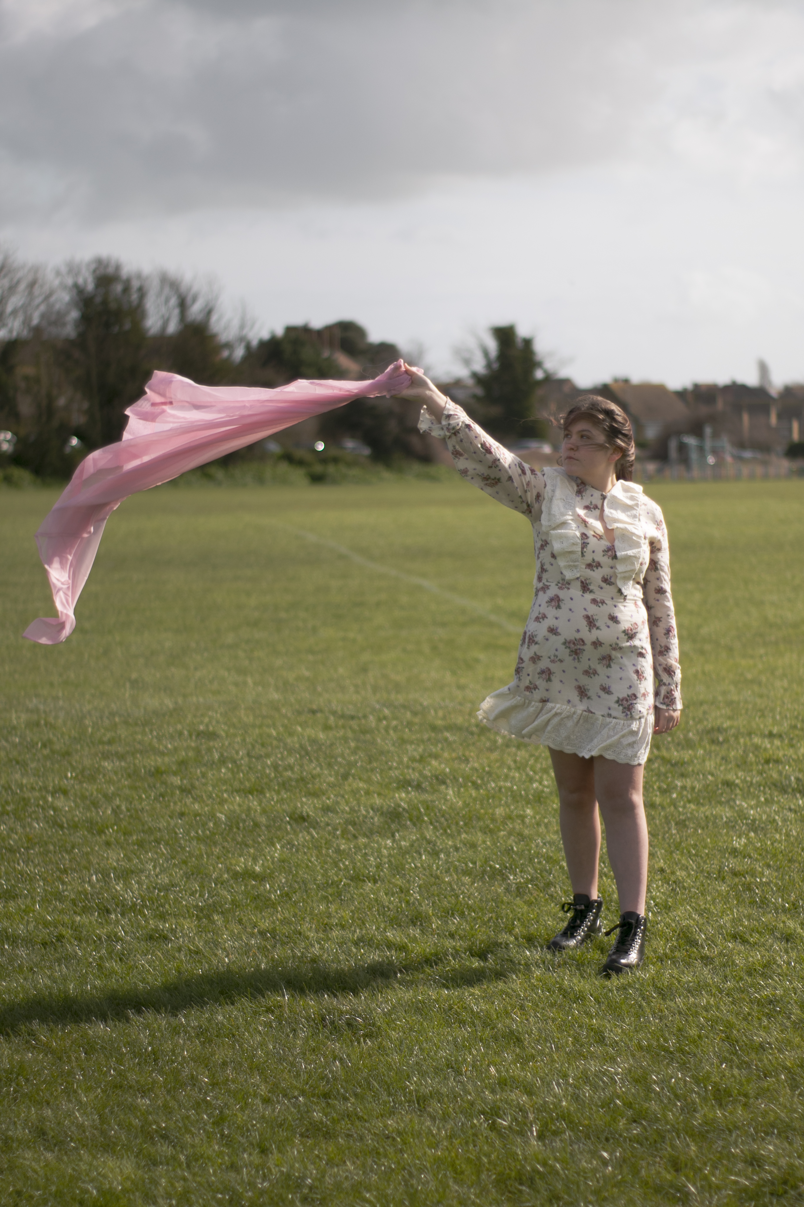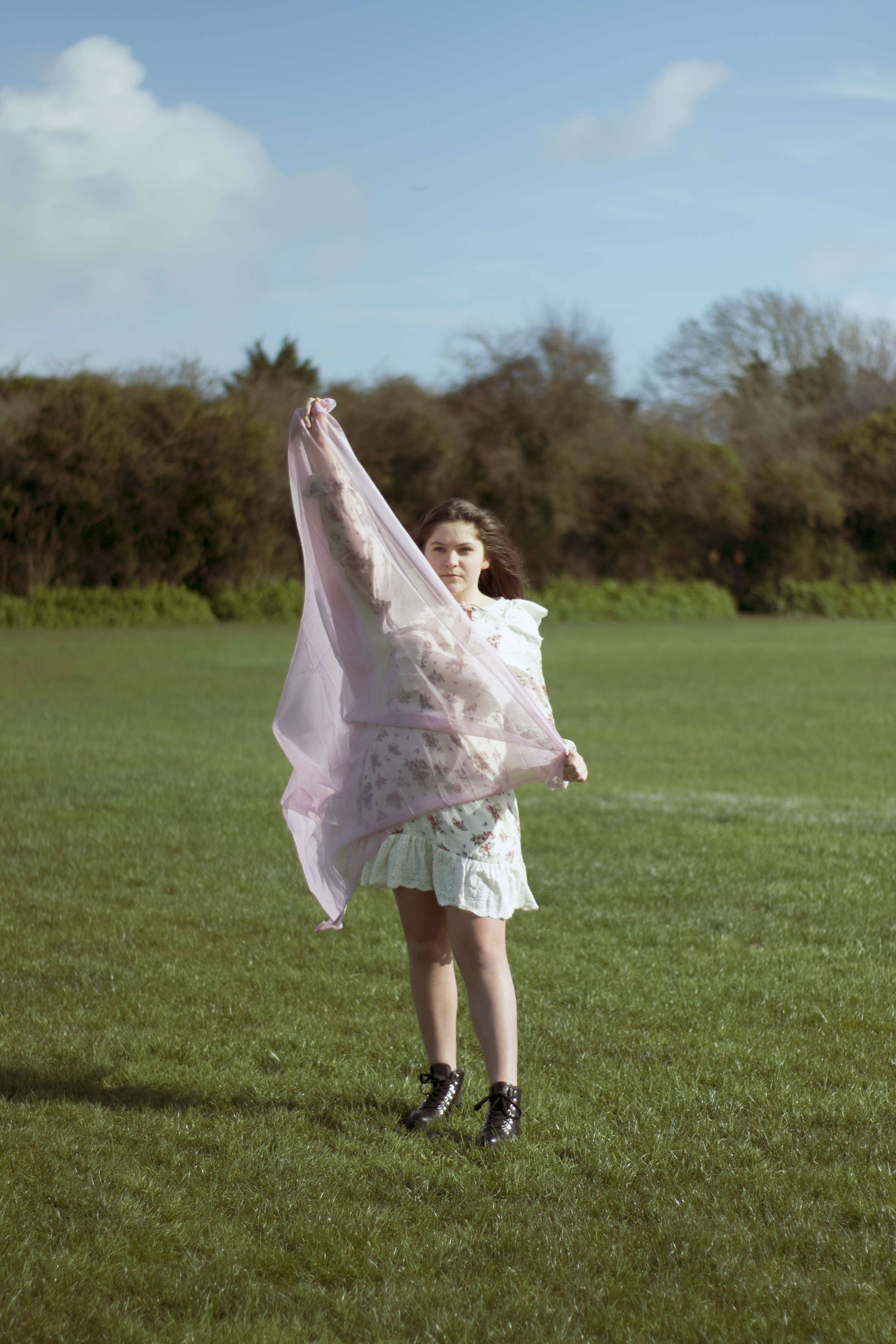 The shoot was a lot harder than I thought; the wind went in different directions, which made the timing/angles of the material hard to take. The weather was constantly changing, which made the condition harder, as well. When positioning the model and the fabric to how I wanted it, the wind moved it straight away, so I had to be quick enough and have communications between the model and me. The blue fabric happen by accident, I let go of it and few into her face, almost like the scene in movies when the newspaper lands in someones face. So I place it in position, and this is how it turned out.