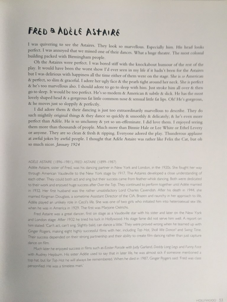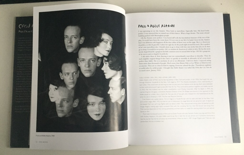 The image ‘Fred & Adele Astaire, 1930’ is another image of Beaton multiple exposure work. In the text, Beaton always mentions how “They look so marvellous”, how “His head looks perfect” and how Adele was “so slim & graceful”, so perhaps that why he produced a multiply exposure image, so you can see how ‘perfect’ they are from all angles. Because Beaton has used the word ‘perfect’ seven times throughout the paragraph, and other terms as well. Maybe that why Beaton mainly photographed celebrities because of their looks and status. Or how he was interested in their own identity.